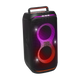This unit is built like a DJ-booth on wheels: wide, sturdy wheels and a telescopic handle let you roll it wherever the party is. It features a 3-hour full-charge via AC, and an up-to-18-hour removable battery keeps the music going (lower volume & lights = longer life). The Stage 320 also includes funky light effects—starry lights, strobe, trails—that sync to your beat, dual mic/guitar inputs with echo/gain controls, and app control + Auracast for chaining multiple speakers.